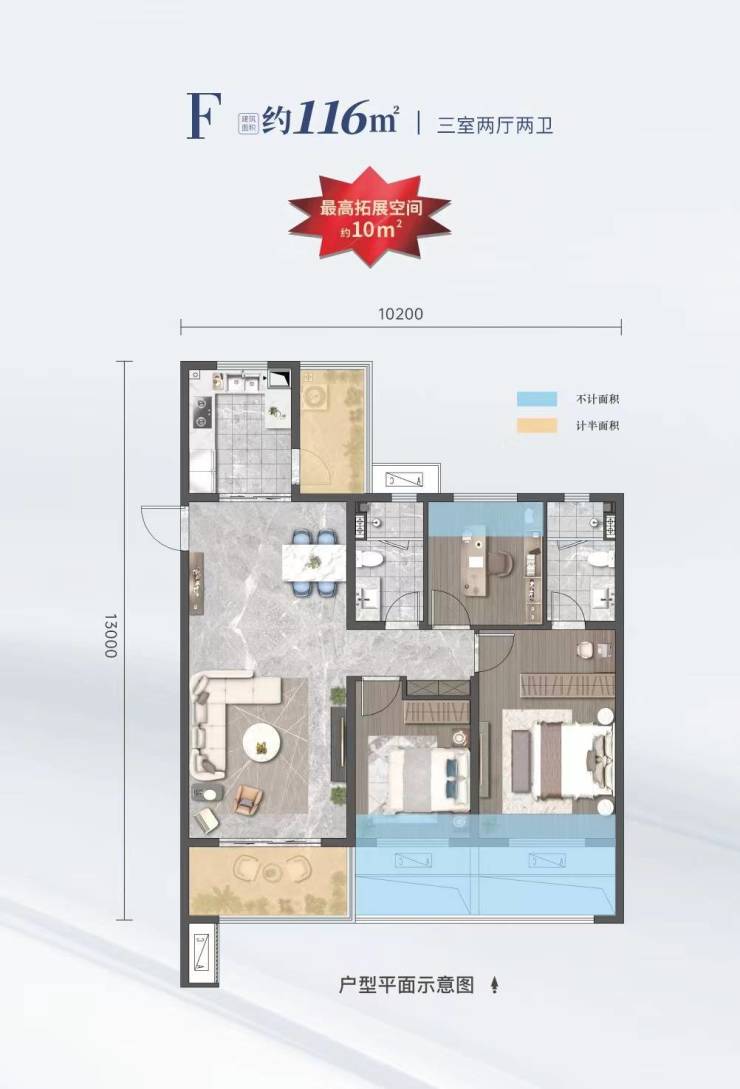 户型方正,全明通透,清风阳光四季相伴。三面宽朝南,大标准客厅衔接景象阳台。餐、厨、客一体规划,人道化日子动线。主卧步入式衣帽间+独立卫浴,启幕日子奢享